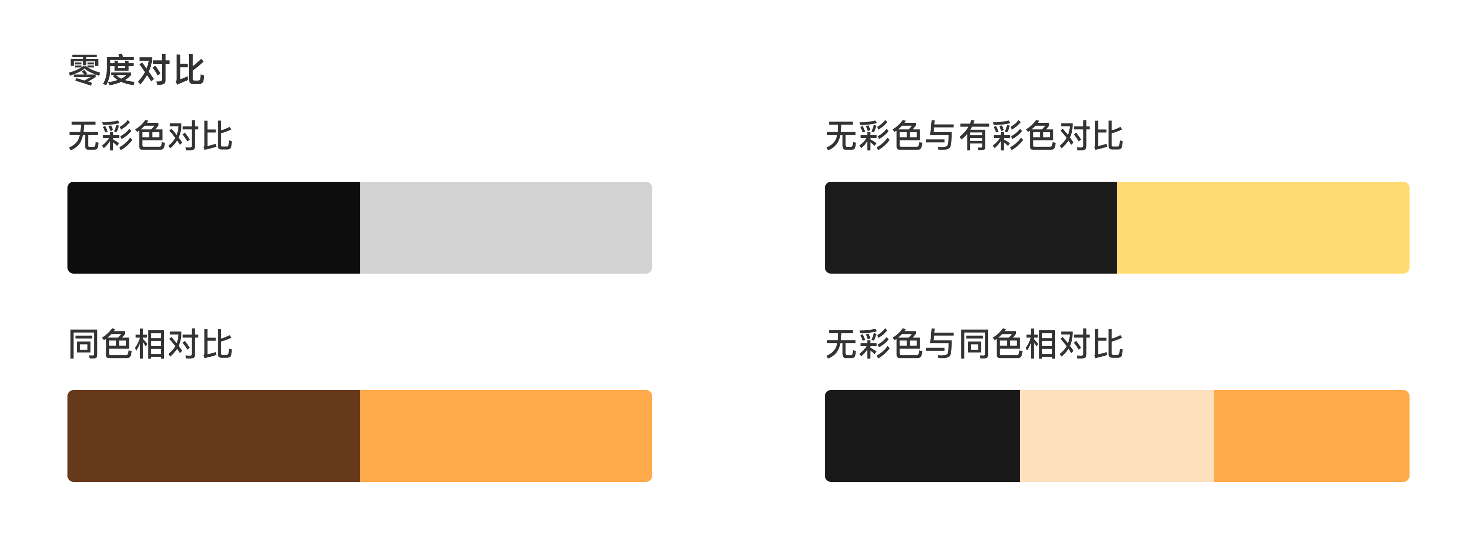 零度对比:零度对比其实也分了几块,比如无彩色对比、无彩色与有彩色的对比、同种色相对比和无彩色与同种色相比四种。