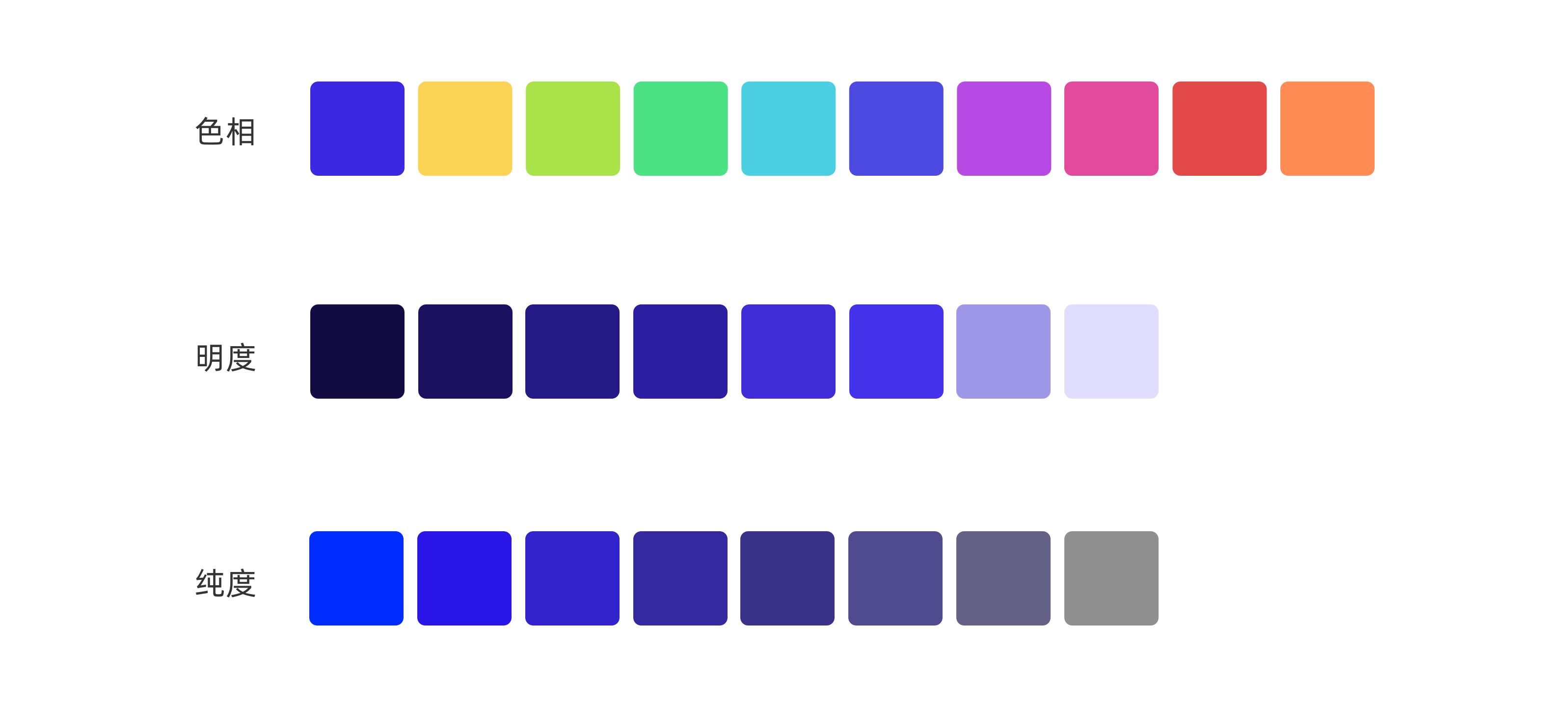 色彩有色相、明度、纯度三个属性,称为色彩的三属性,色彩可以根据这三个属性进行体系化的归类。