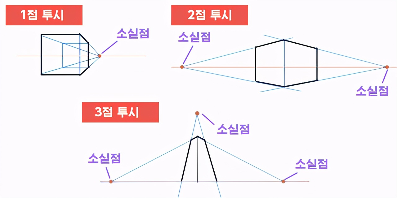 通过在2点透视法的消失点之上或之下添加第三个消失点,您可以表示从要绘制的对象底部看到的角度和从要绘制的对象顶部看到的角度。