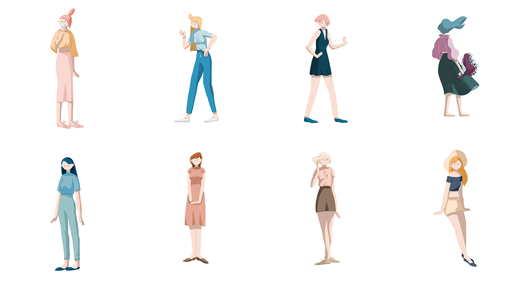 第一步:先上好固有色。这一步需要分析这组插画的配色。我们看到他们的色调是属于低饱和度的,配色采用大面积的邻近色,小部分的间色来增加画面对比。那么我们就选择低饱和度,并采用间色提高画面对比的办法去上色。