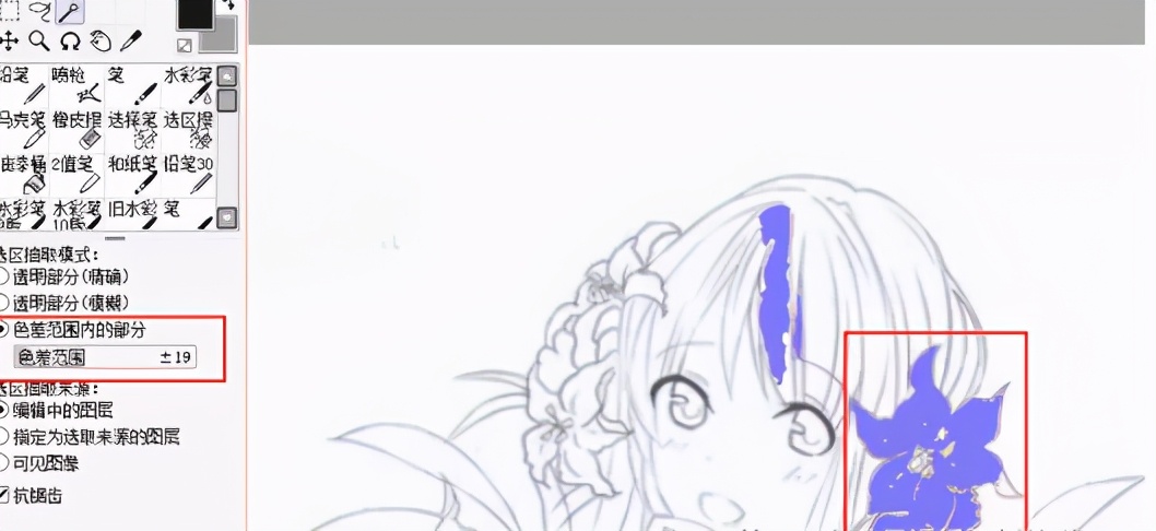 主要选择线稿的时候,有的时候魔术棒就选择了一点点,怎么办?