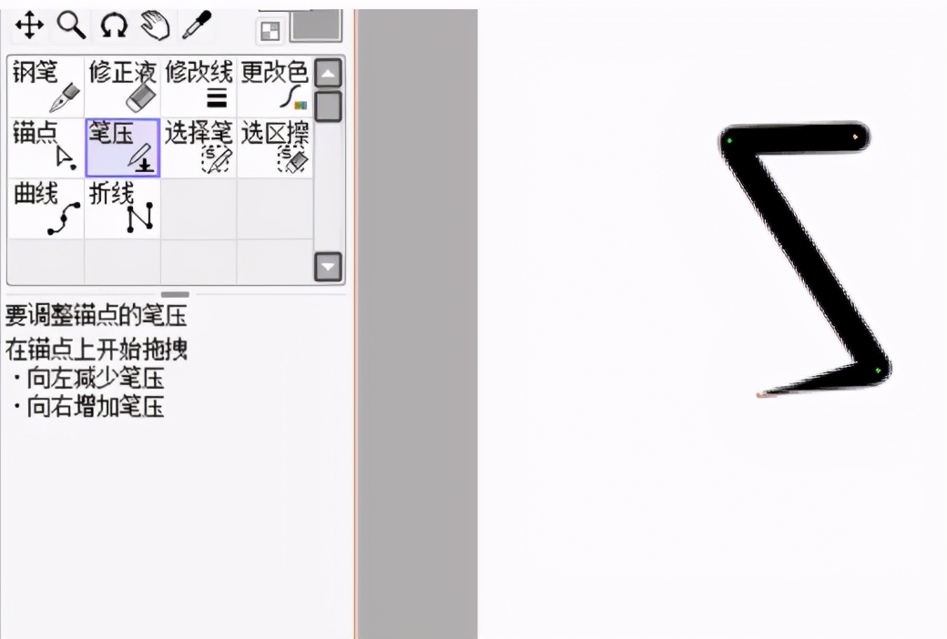 不过大多数我画都是板子,鼠绘的话,就是比较麻烦了,依旧是钢笔图层,然后自己用钢笔画,之后就是用【笔压】来调整,用笔压工具来对着描点点击拖动,就可以有了~这个笔压可以自己进行研究一下的