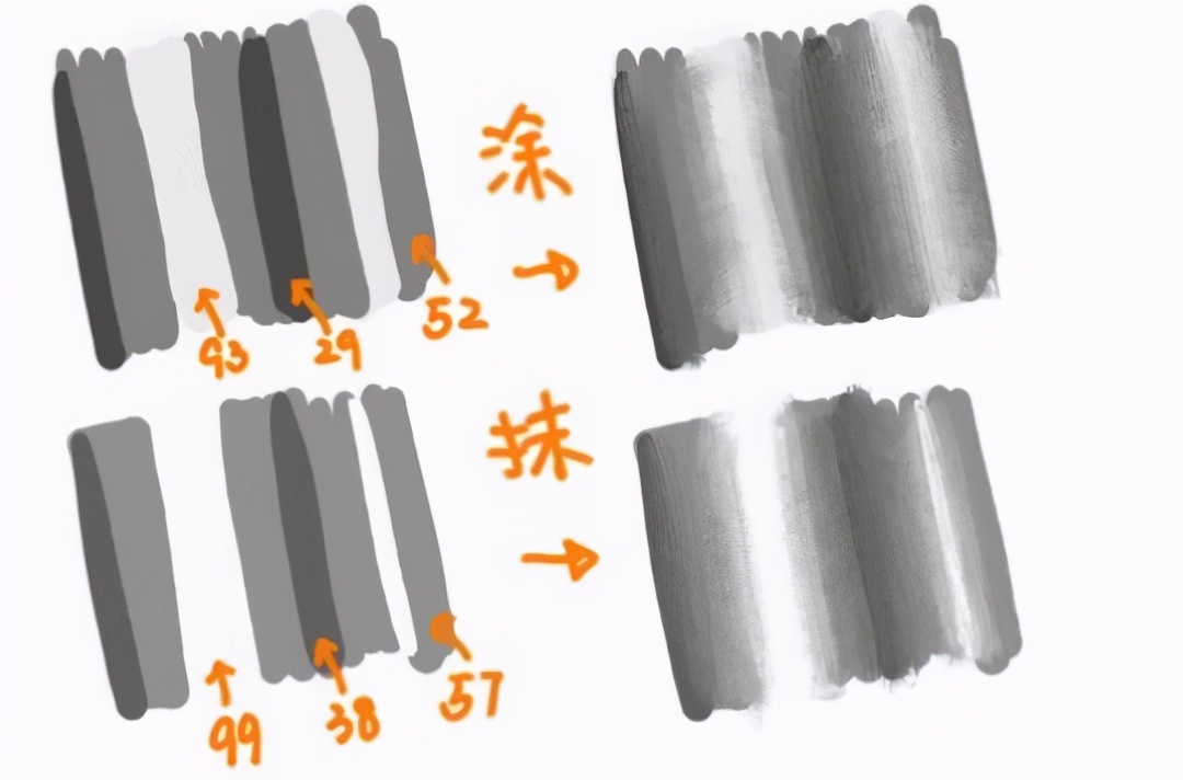 以上数值里选个亮色,选1到2个暗色先用硬笔画出来,再用个涂抹工具稍作过渡