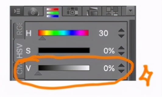 处理成黑白的,调出HSViH色相,S饱和度,V明度。我们在这里要关注的是V值!(小画家必备hsv滑块﹐别关了)