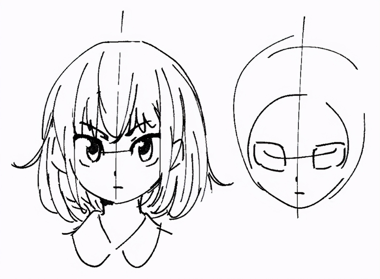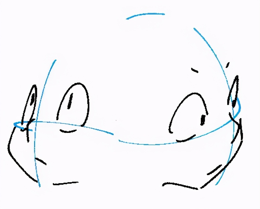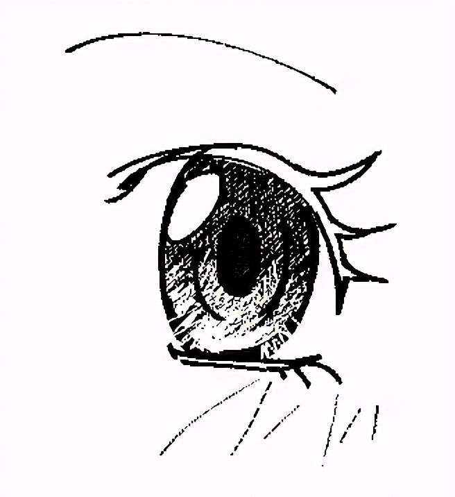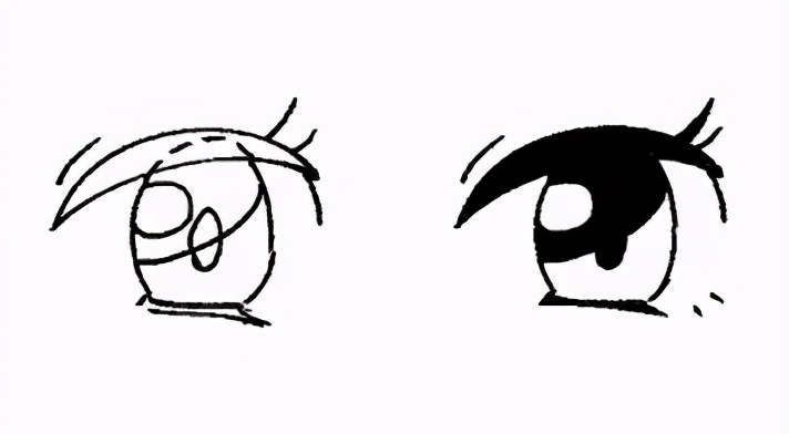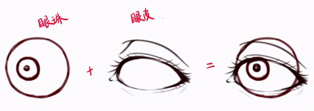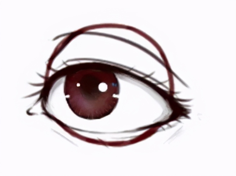 先画出一个眼球体,再画出眼皮。眼皮是盖在眼球上的