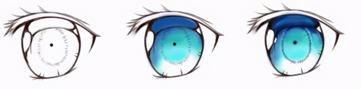 需要注意的是因为眼球是一个球体,在眼皮上方会产生一定的凹陷,上色时就要画出暗部结构