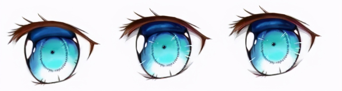 如果想要绘制下图右上角这种高光的情况下,需要将整体的质量进行提升,否则会产生眼球突出的感觉。要根据自己的作画水平来选择合适的高光,不要强行给自己的画增加难度