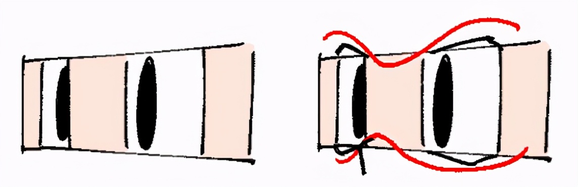 进行压缩时,为了不让它变成一个平面,需要注意上下眼皮的形状。这里可以想象成一个眼罩的形状。