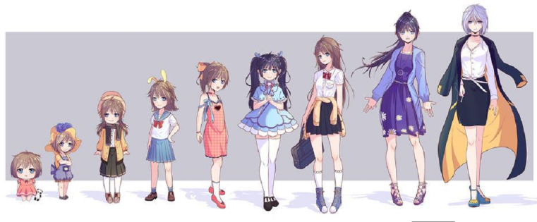 人物在成长历程里,因为生理成长,影响了人物的性格特征,所以配色的方案也是不一样的!