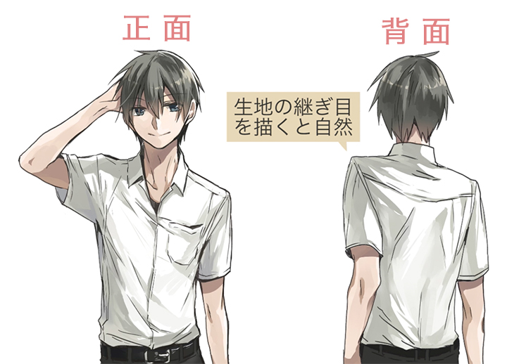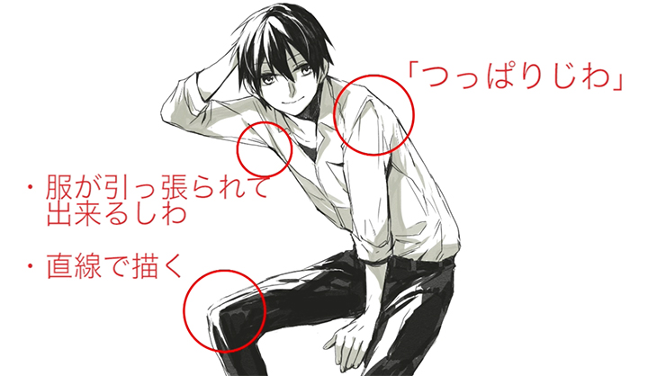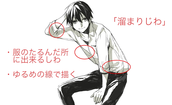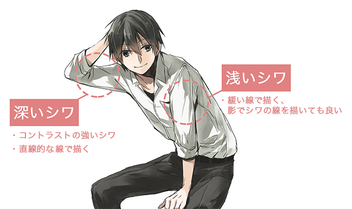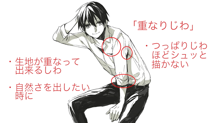 重叠褶皱是衣服的布料可以重叠的皱纹。卷起袖子的时候或者想做自然的衣服的时候画吧。