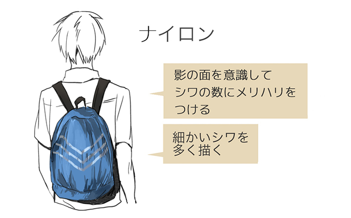 尼龙是容易起皱的材料,把无数细小的皱纹画进去吧。