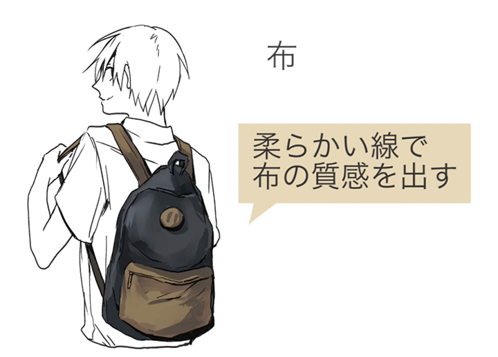 为了让布给人柔和的印象,用松散的线条画皱纹。