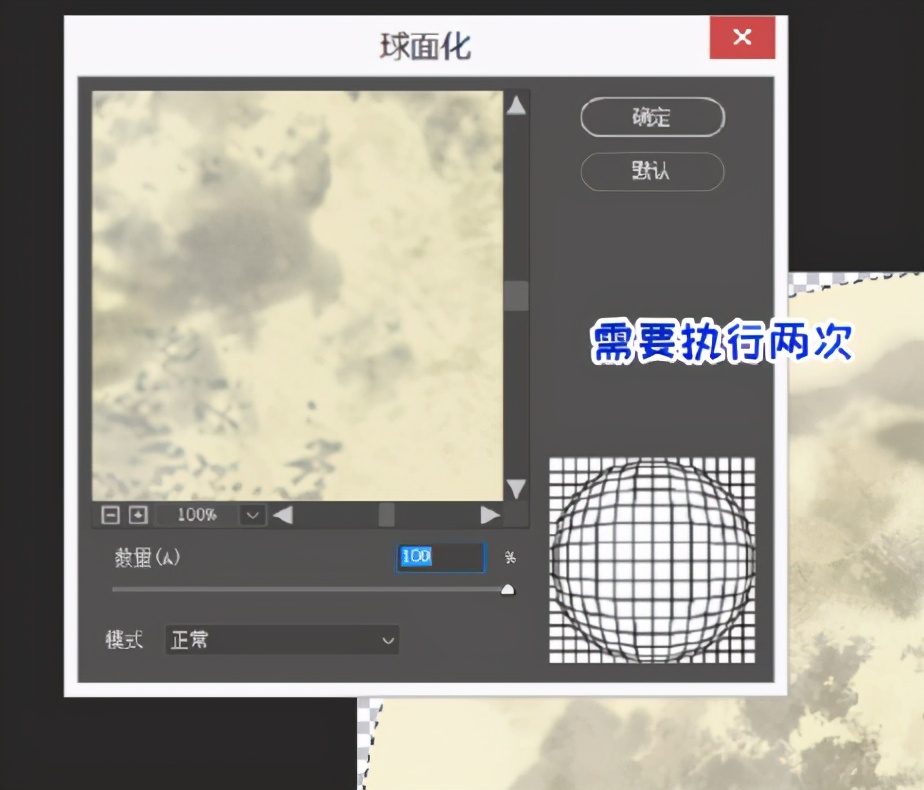 执行两次滤镜/扭曲/球面化,数值拉到100%