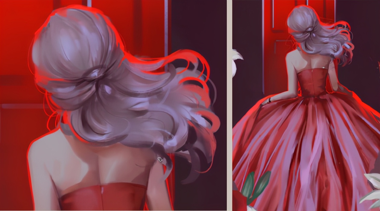 分图层细化将不必要的笔触用涂抹工具模糊掉,用橡皮工具处理边缘,同时在人物的边缘增加反光的红色。