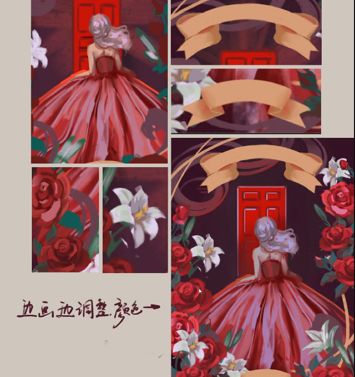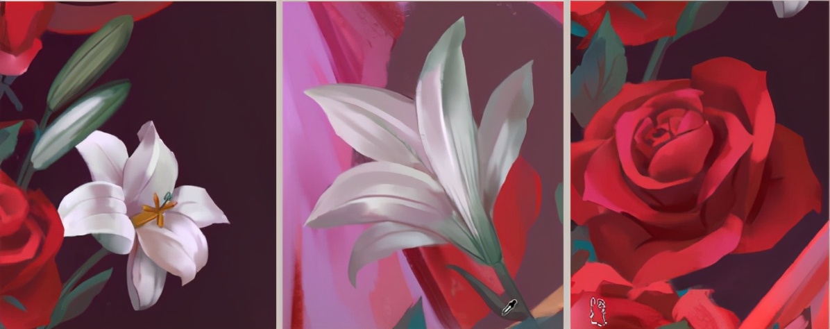 个图层,区分不同物体的固有色(主体、人物、玫瑰、百合、周围装饰物分别分开)