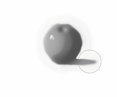 第二笔我们就开始把暗部和投影的位置给画出来,只需把笔刷稍微缩小一点就可以了,