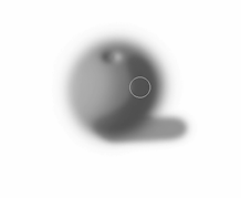 第三步,我们把笔刷放大,在亮部的地方往刷上稍亮的灰色