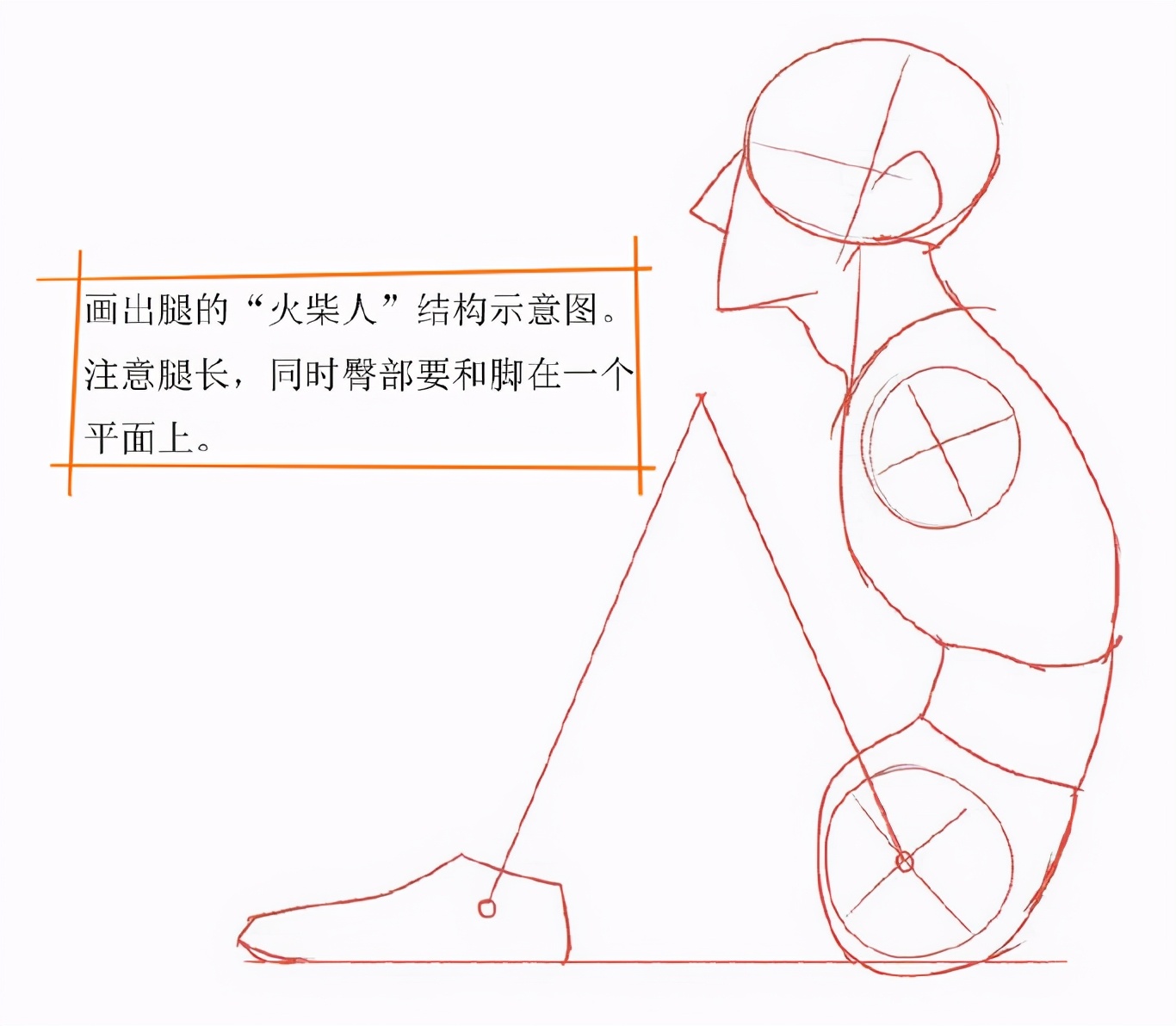 画出腿的“火柴人”结构示意图。注意腿长,同时臀部要和脚在一个平面上。