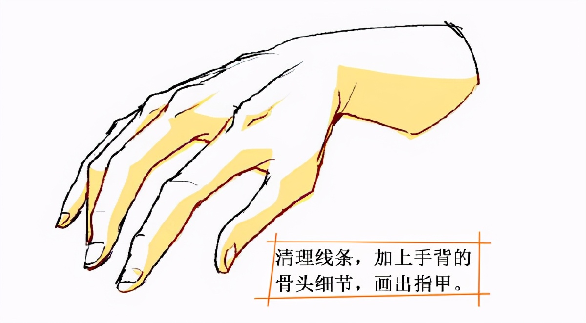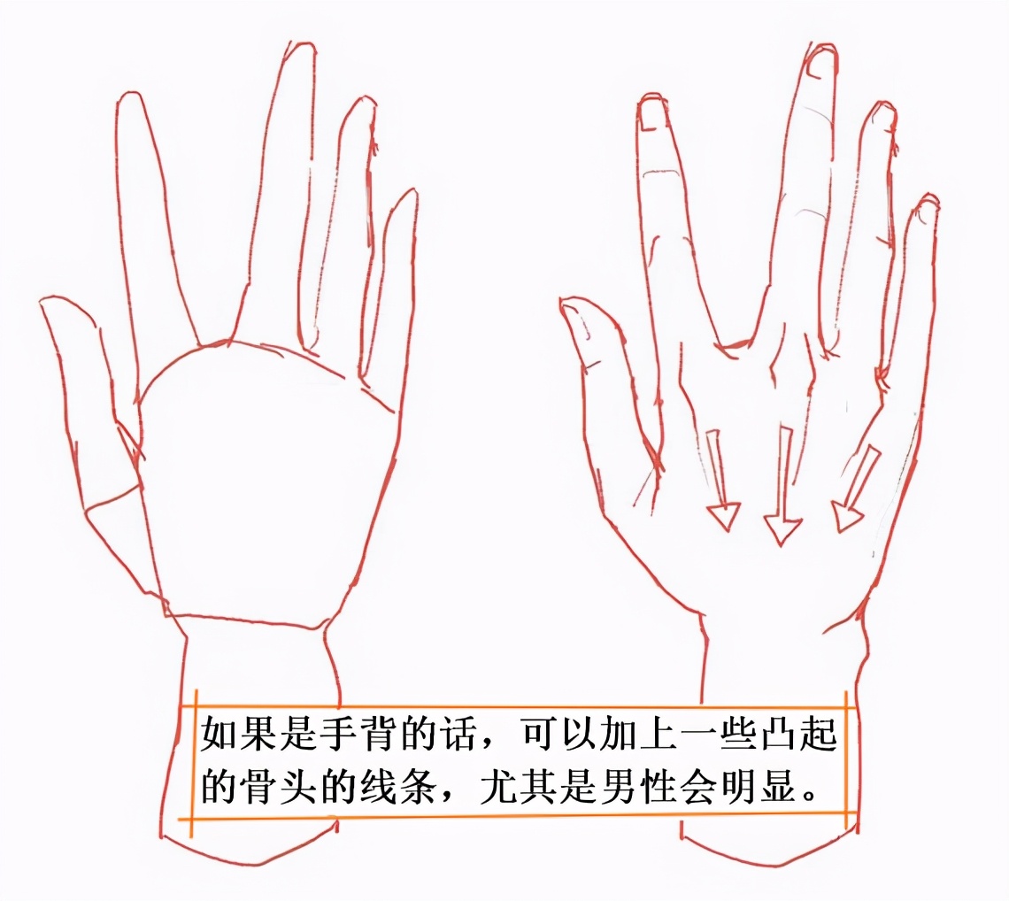 如果是手背的话,可以加上一些凸起的骨头的线条,尤其是男性会明显。