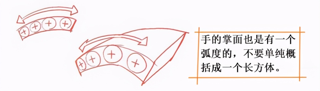 手的掌面也是有一个弧度的,不要单纯概括成一个长方体。