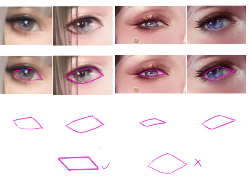可以看到,这些眼睛外轮廓是趋向平行四边形,而不是橄榄型。