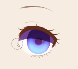 再新建图层,也用正片叠底的模式,选择偏蓝一些的颜色,用喷枪画出眼球上半部分的暗部。