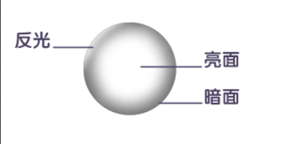 因为光源从正面来,所以产生了亮面 暗面 反光。