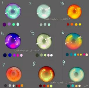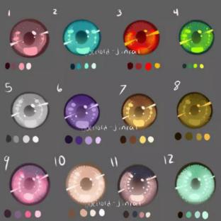 给大家一些眼睛的配色参考~~记住眼睛的颜色是由上而下过渡~,也是由深到浅渐变哦。