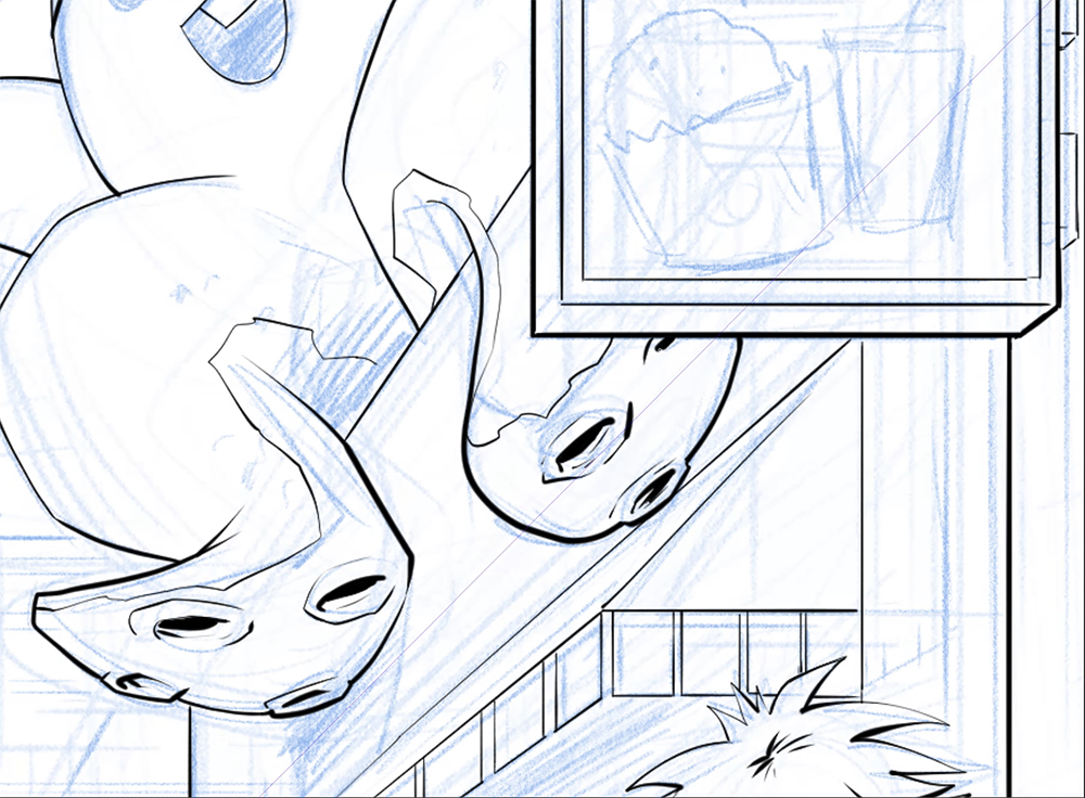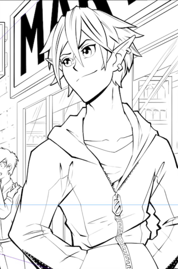 查看图片并相应地调整线条粗细。我多次在切割中来回工作,因此可能会忘记使一些线条变粗。例如,该场景的主角将线条粗化并分离出来,使其看起来从前景中更突出一些。