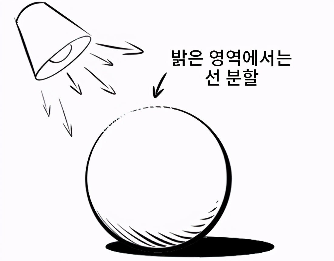 向直线添加锐角或逐渐向光源方向绘制线时,可以更好地看到图中的区域。这可能会让人产生某种突兀的错觉。