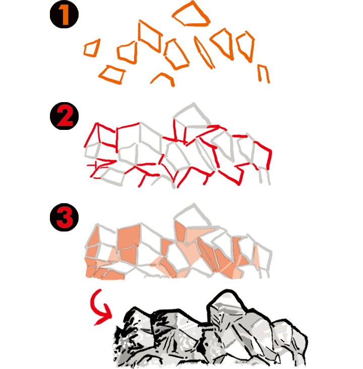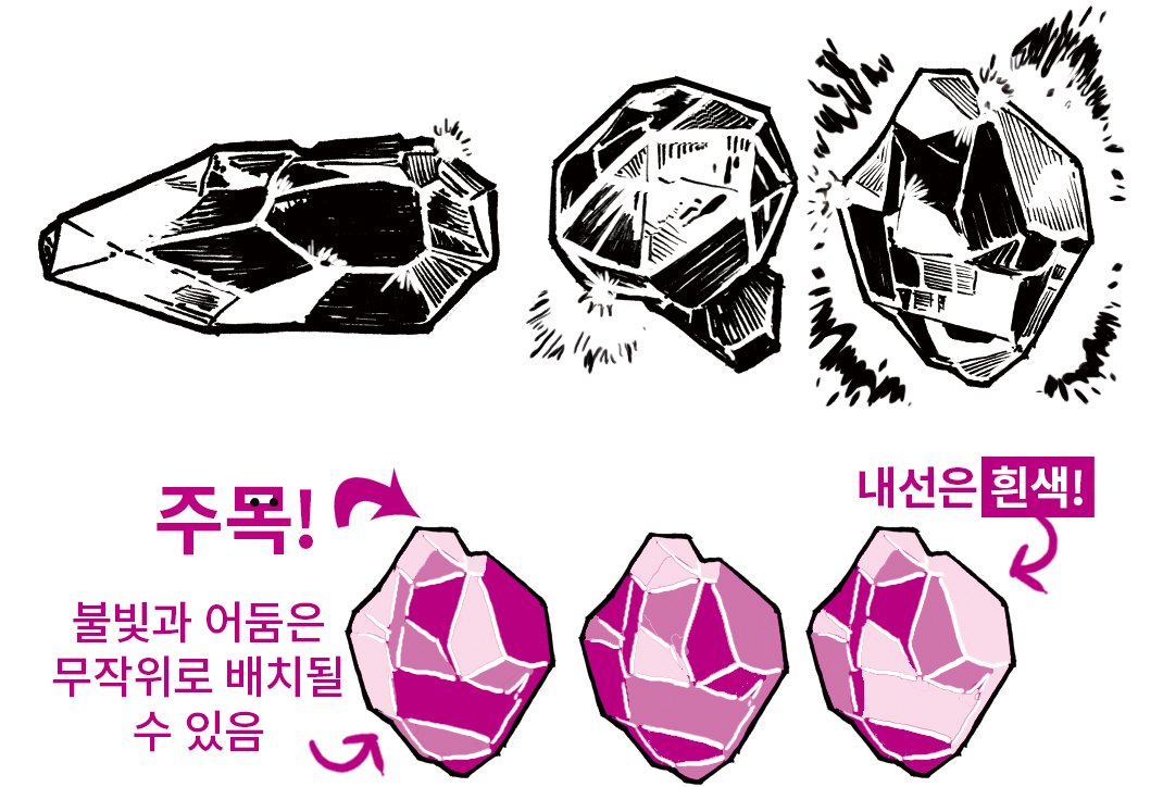 要呈现未经加工的矿物形状,请绘制更多的内部形状!