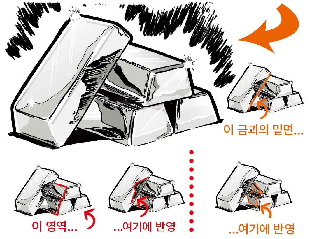 要大画一堆金条,请简化反射,但别忘了反映暗影。