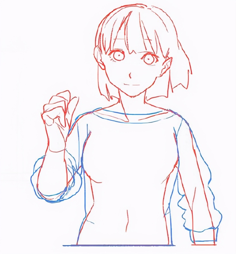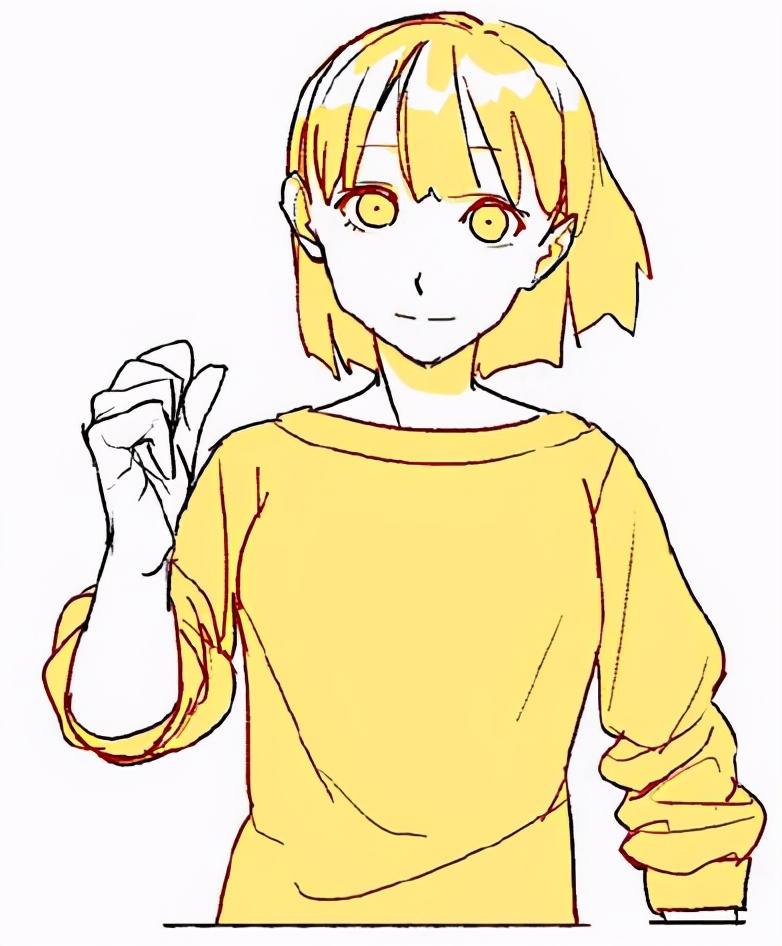 就像之前说的那样,身体的结构和服装要保持一-定的关系胳膊的位置,如果是挽起的袖子的话,外剪影也是凹凸不平的