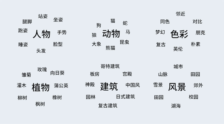 动物(狗、猫、马、蛇、虫、鼠、熊猫等);