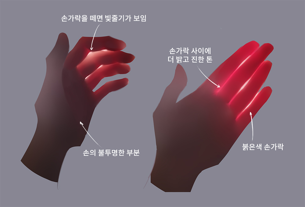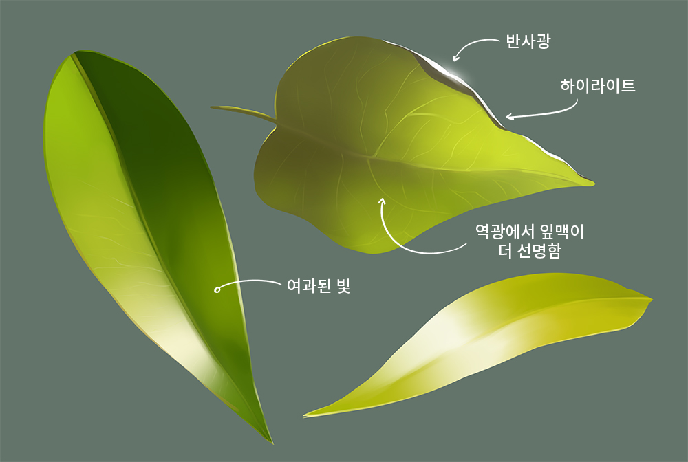 光仅部分穿过半透明材质。透射物体的光线,如在下一片叶子和手上,可能会使物体的颜色更浓。