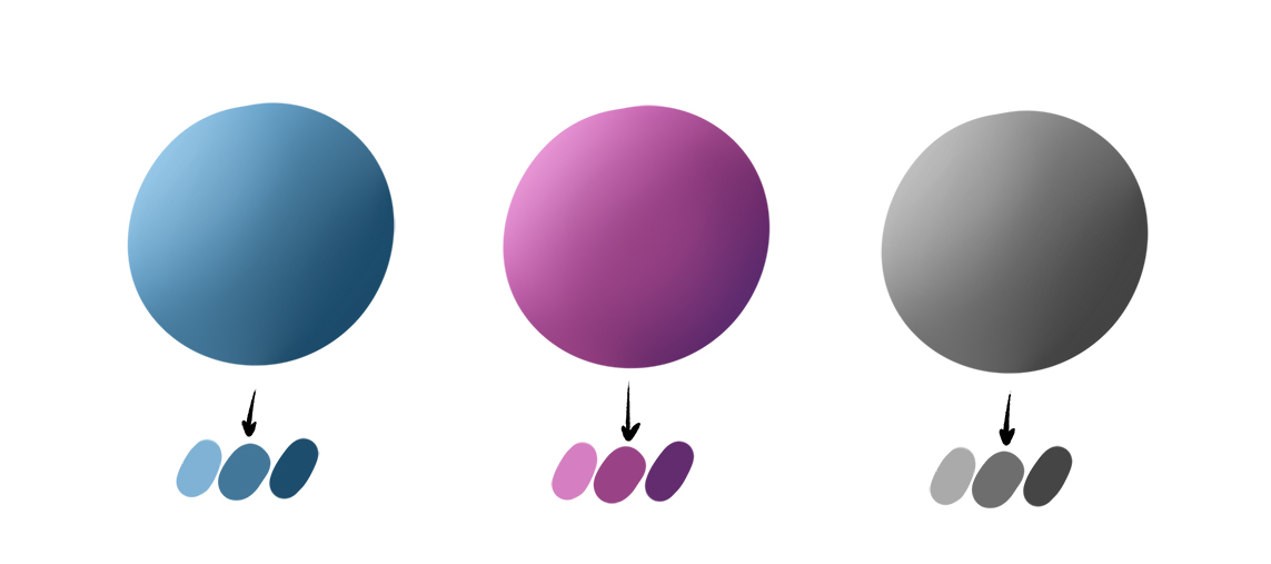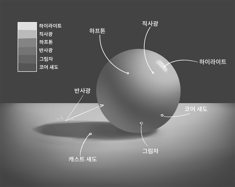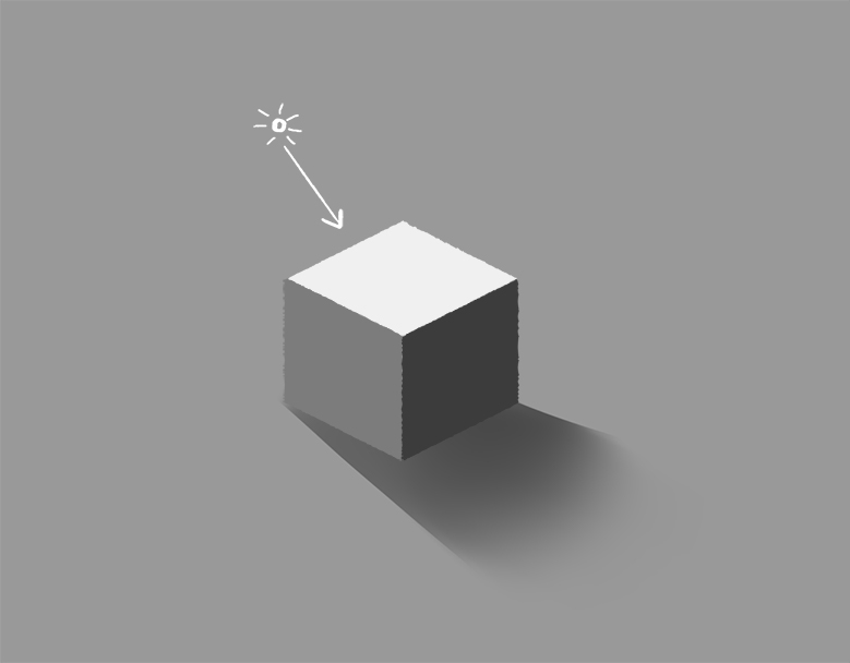 绘制时,将值添加到既定义光又定义阴影的形状。将此值想象成刻度,可以很容易地确定每个灰色色调的亮度和暗度。