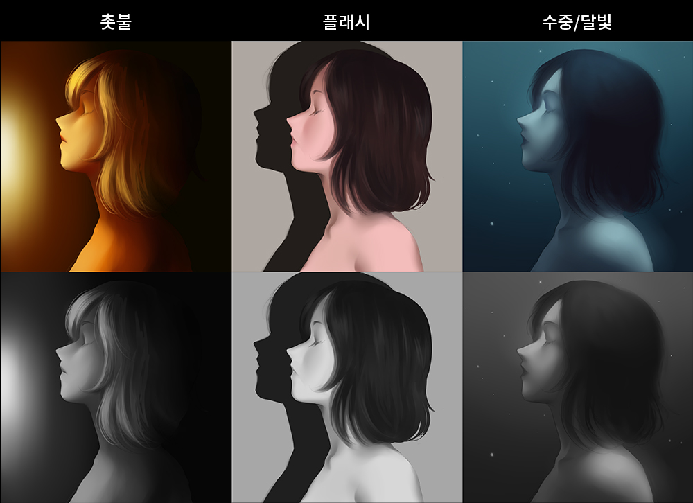 在下面的示例中,我们尝试基于同一图模仿其他光源。或是用灰度来看待。