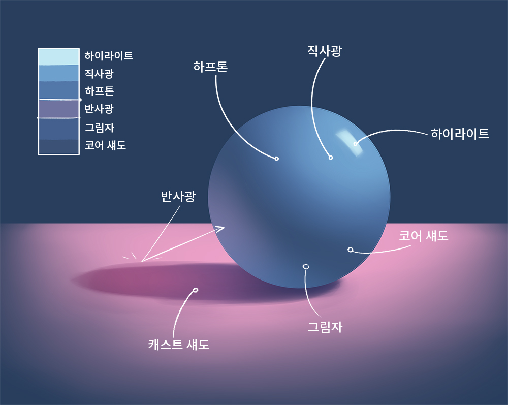 核心阴影:这就是阴影的轮廓。对于球体,可以沿物体表面的形状观察环形形状。该区域较暗,因为通常从表中反射的直射光或反射光无法接触物体的这一部分。