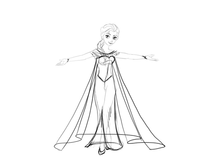 完成后,删除多余的辅助线,迪士尼公主,雪奇缘公主艾莎就画好啦,新手也可以画哦,简单。