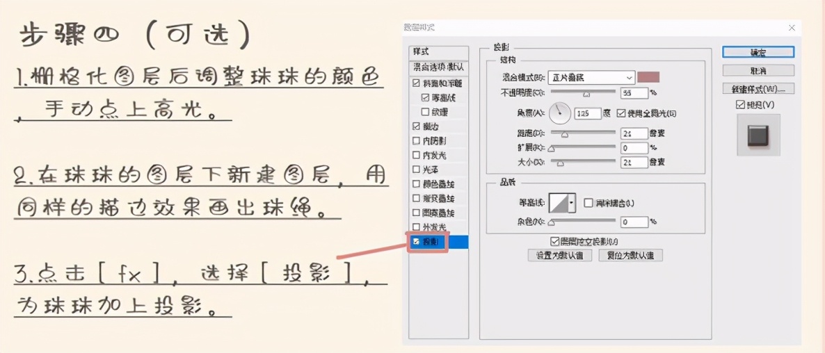 3.点击[f×],选择[投影],为珠珠加上投影。