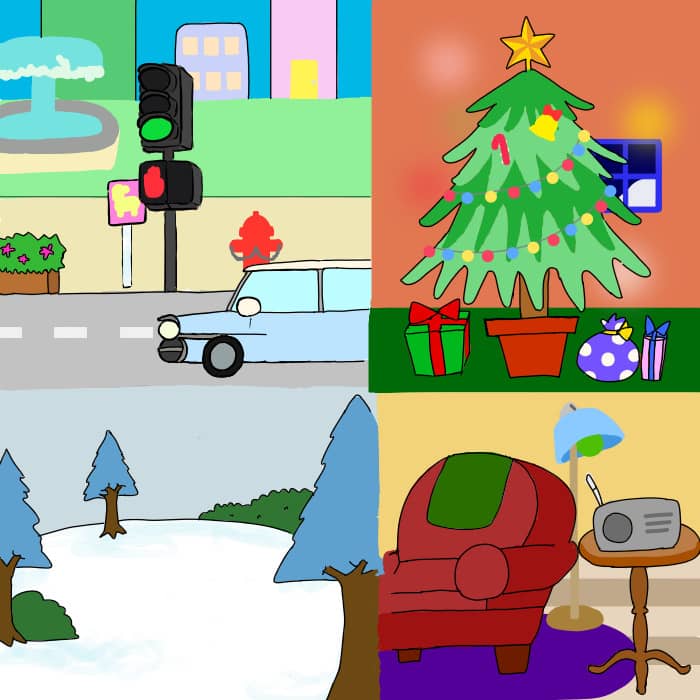 卡通本身就有很多奇特的装饰和花哨的建筑,所以使用艳丽的颜色画背景也会变得很可爱。