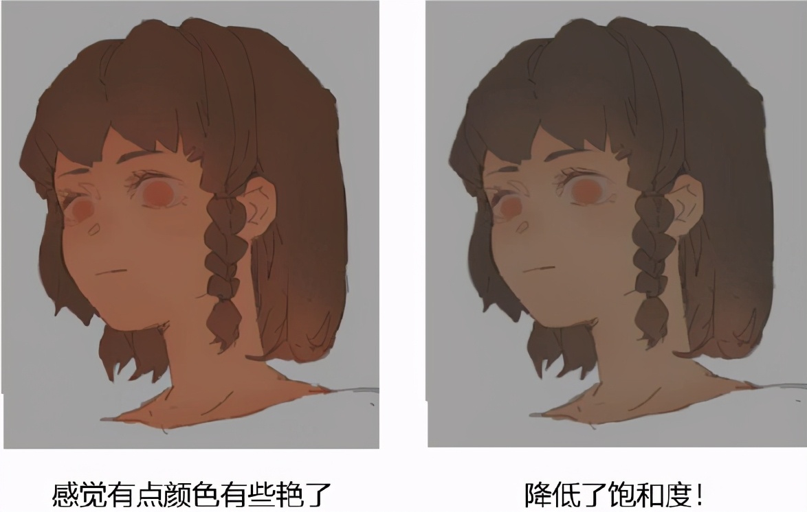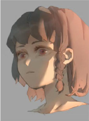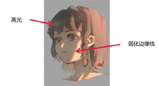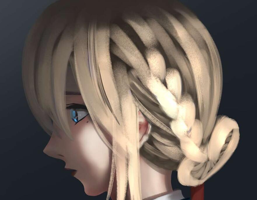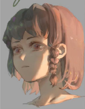 添加细节,像明暗交界线处可以在添加一些其他的颜色弱化一下边缘。然后头发处可以加一些高光~