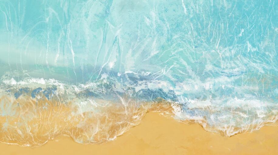 并且要把握住海水颜色与海滩颜色的混合,以及海水打湿海滩的感觉。