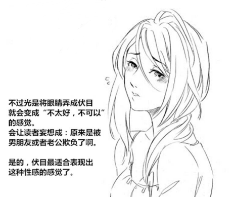 还有许多情景可以使用伏目比如考虑问题的时候,悲伤的时候。伏目可以表现出各种各样的表情。在我的印象中,刻画人物表情非常到位的画家经常使用伏目。