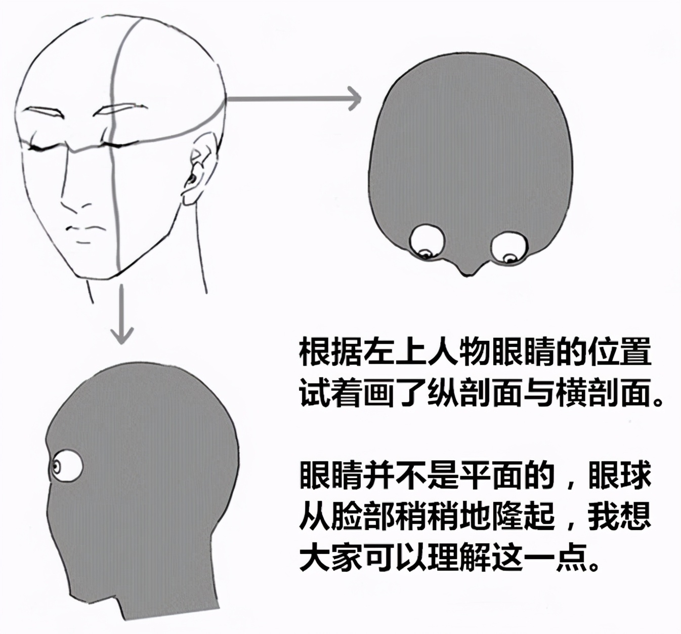 没有把眼球考虑成立体球状物,而是无意识地把眼睛当成像贴纸那样平面的物体。