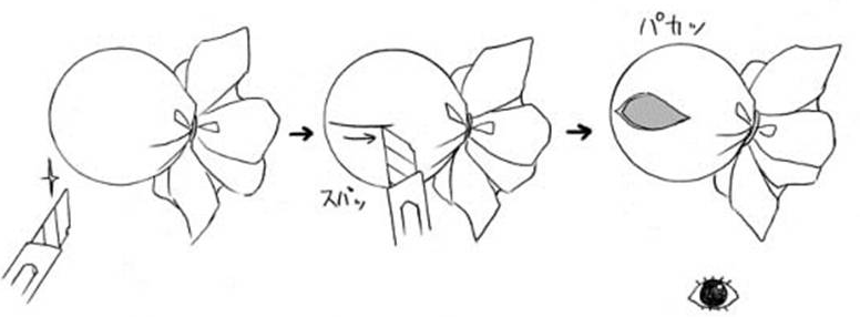 然后在披上的布上,划开一个口子。这样的话,再拉开口子就变成眼睛的形状了。这,就是眼睛的构造。