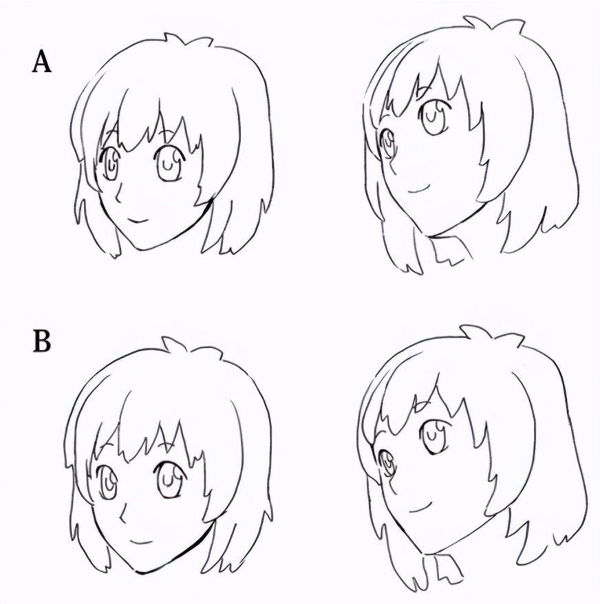 你们有找到A与B之间的区别吗?A中把眼睛画的相对比较平面、而B的话则是很注意眼睛的构造。