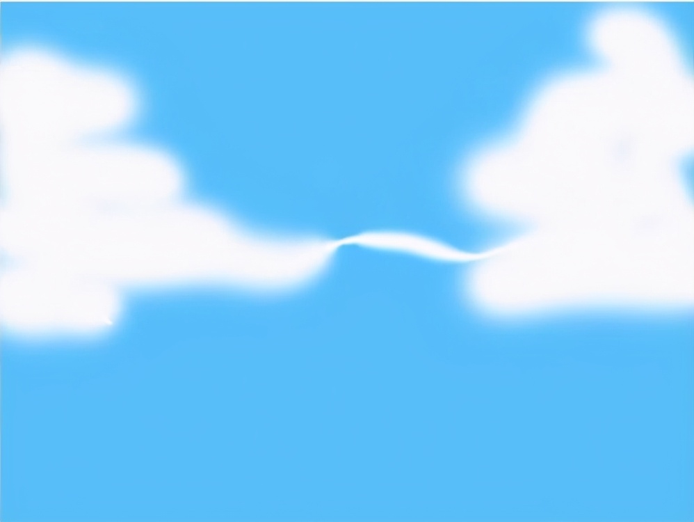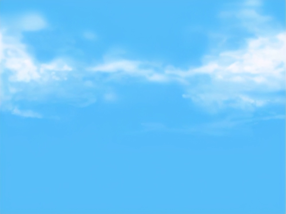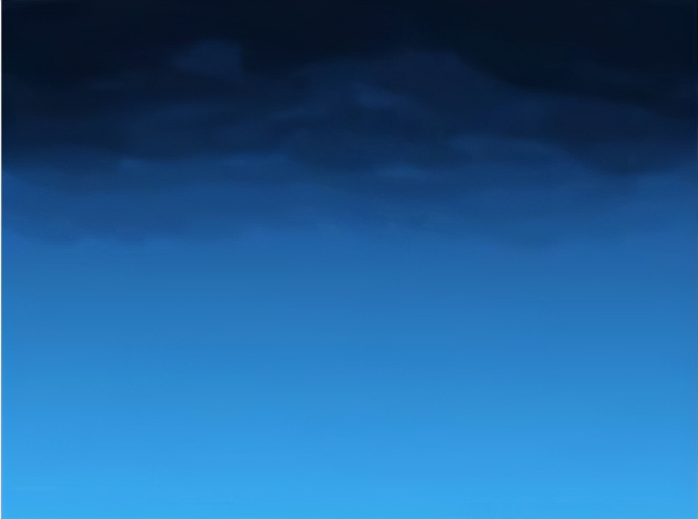 下降笔刷透明度,将越来越远方的云的颜色渐渐画淡。首先,从最前方的云中取色然后涂色,再是中间的云…这样反复。