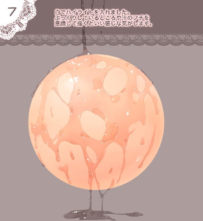 用白色加了高光。有意识地画出蓬松感和汤汁的边缘会感觉很好。