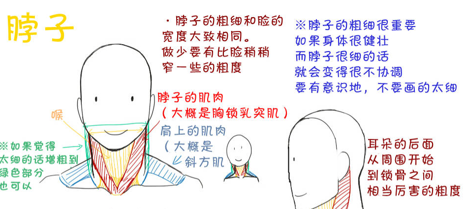 脖子的粗细很重要t如果身体很健壮而脖子很细的话就会变得很不协调要有意识地,不要画的太细